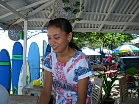 朝方 ブラワーを見て割れていなかったのでチャングーに変更!! 前日の夕方 よっちゃんとスミニャックのディアナプラホテルから ブラワーまで約1時間歩いて帰りは 真っ暗になり 足がパンパンだった この二人 いかついでしょう(^0_0^) チャングーで2R終わってワルンでご飯を食べてたところ タトウーの外人が上がってきたJ君の知り合いらしくテーブルを囲んで一緒にご飯を・・・ 彼は パソコンのインストラクター 「ゲヱー〜〜〜!!」 いかつい先生です モテるみたいですよ J君はというと サーフインストラクターとガイド日本語も英語も話す 耳にピアス舌にピアスは無くなっていたいかついです!! 今日本で流行ってる ネタを伝授したらしきりに練習していた 「君 かわウィーーねヱー・・・」 「巨乳 ぱみゅぱみゅ〜〜・・・」 これ!!クタビーチで 日本人の女の子に絶対使うよ(#^.^#) |