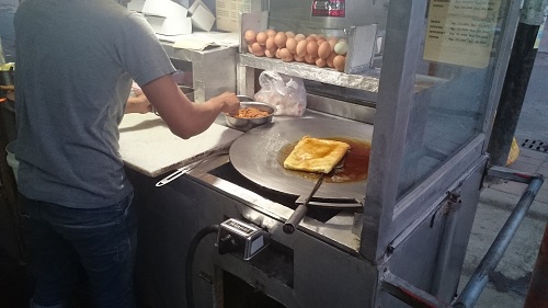 Martabak... これ美味しいよ って ヤントが。。。。。。 夕方の時間帯でないとやっていない けっこう 車で探しましたね 現地の人がよく食べる マルタバ。。。。 絶品です 玉子3ついれて アヒル??鶏肉のミンチに。。。。 ネギがごっそり入って 香辛料。。。。 薄いパン生地でぐるっと包んで カラットあげて サクサクです