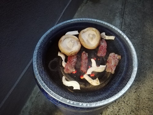 うめーーーーーー 最高よ 特に椎茸が最高です 地元世羅産の椎茸を そのままじっくり丸ごと焼きます かさの部分を下にして へたを上 じっくり焼いていると じわーーーーーと かさの部分に椎茸の汁がわき出てきます その汁を見ながら 岩塩をかけて パクリ 絶品です うまかった またやろう