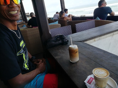 東信弘さんの 今の気分クレイジーな気分 Plataran Canggu Bali プラタラン チャングー pagi pagi selamat pagi panas 暑いゼよ でも気持ちいい cuaca kemarin baik baik saja hujan turun di malam hari バリ島 3日目 やってる やってる 朝イチ ジャラン・ジャラン。。。。 ビキニ姿の外人が 砂浜を走っている おおおおおー 波を見るよ