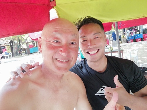 50代のローカルの彼は あなたを見て40年ぶりに サーフィンしますよ。。。。